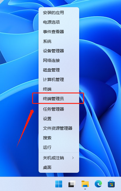 在Windows菜单图标右键鼠标,打开【终端管理员】