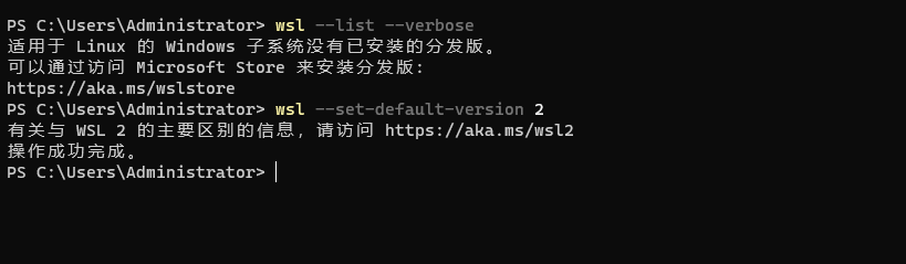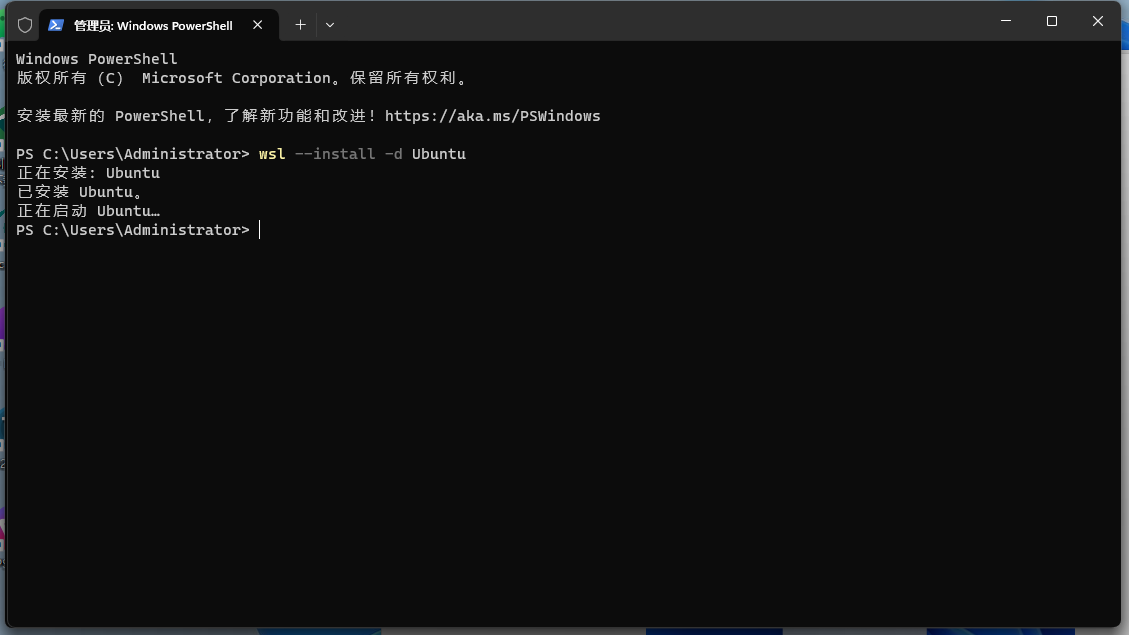 在 PowerShell 中,您可以使用以下命令来安装所选的 Linux 发行版。因为我测试Debian会有很多依赖问题,所以以 Ubuntu 为例: